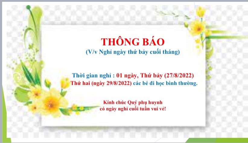 THÔNG BÁO NGHỈ HOẠT ĐỘNG THỨ BẢY CUỐI THÁNG
