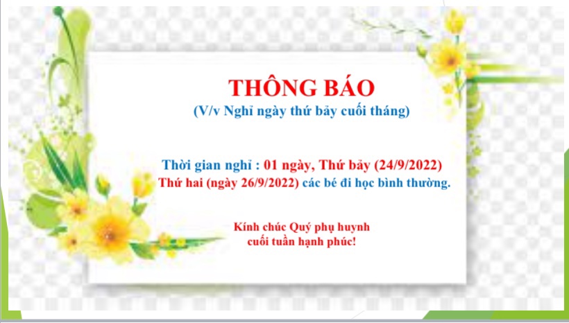 THÔNG BÁO NGHỈ THỨ BẢY CUỐI THÁNG