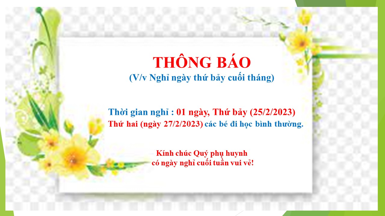 THÔNG BÁO NGHỈ THỨ 7 CUÔI THÁNG