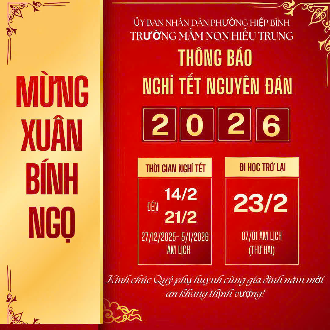 THỒNG BÁO NGHỈ TẾT NGUYÊN ĐÁN BÍNH NGỌ 2026